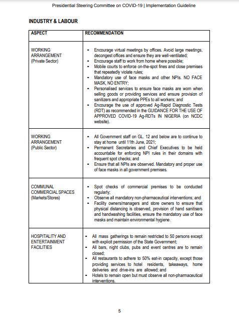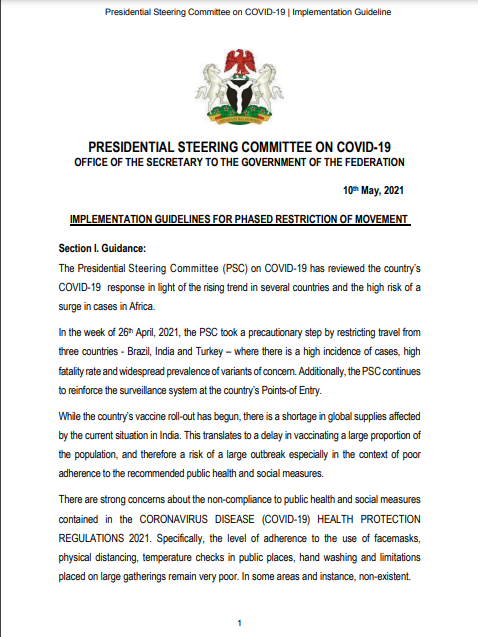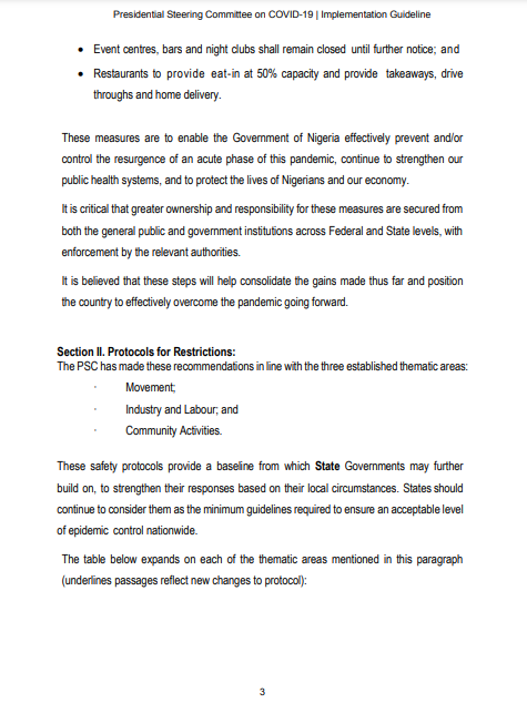 These measures are to enable the Government of Nigeria effectively prevent and/or control the resurgence of an acute phase of this pandemic, continue to strengthen our public health systems, and to protect the lives of Nigerians and our economy.