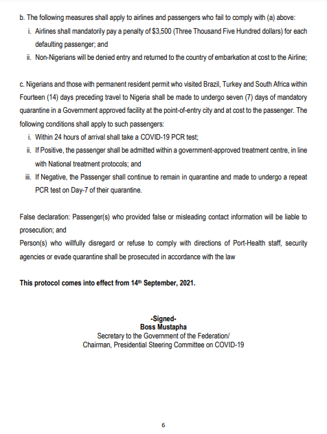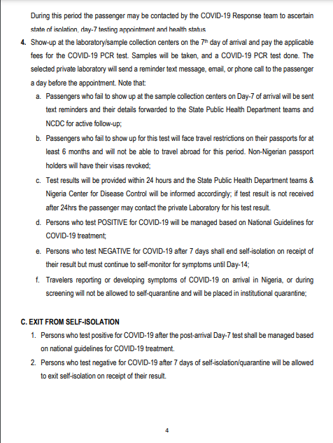 b. Passengers who fail to show up for this test will face travel restrictions on their passports for at least 6 months and will not be able to travel abroad for this period. Non-Nigerian passport holders will have their visas revoked;